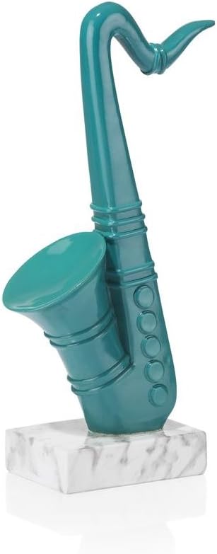 CocoMaison Handbemalte Polyresin Saxophon Statue 39 cm Grün, stabiles Kunstharz Saxophon Design Figur, dekorative Musiker Skulptur, schweres Polyresin-Dekor, langlebige Musikliebhaber Geschenkfigur