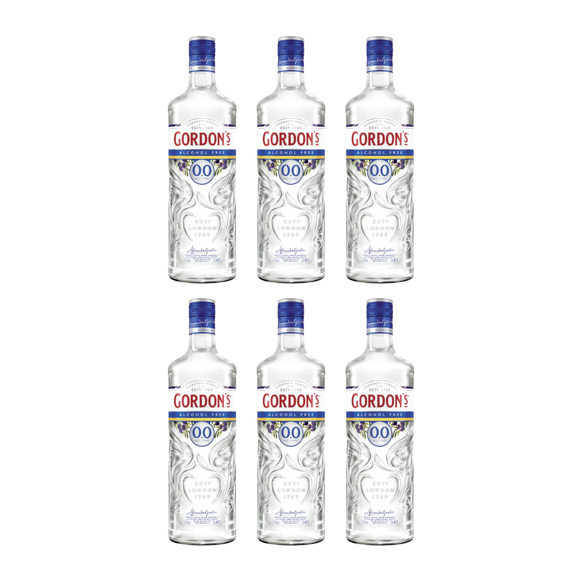 Gordon’s 70cl Alkoholfreier Gin-Alternative 6er Set – 0,7l Flaschen, Gin Geschmack ohne Alkohol, alkoholfreie Spirituosen, Kalorienarme Erfrischung, Gin Cocktail Basis, Aromatisierter Gin für alkoholfreie Drinks - Ohne Alcohol