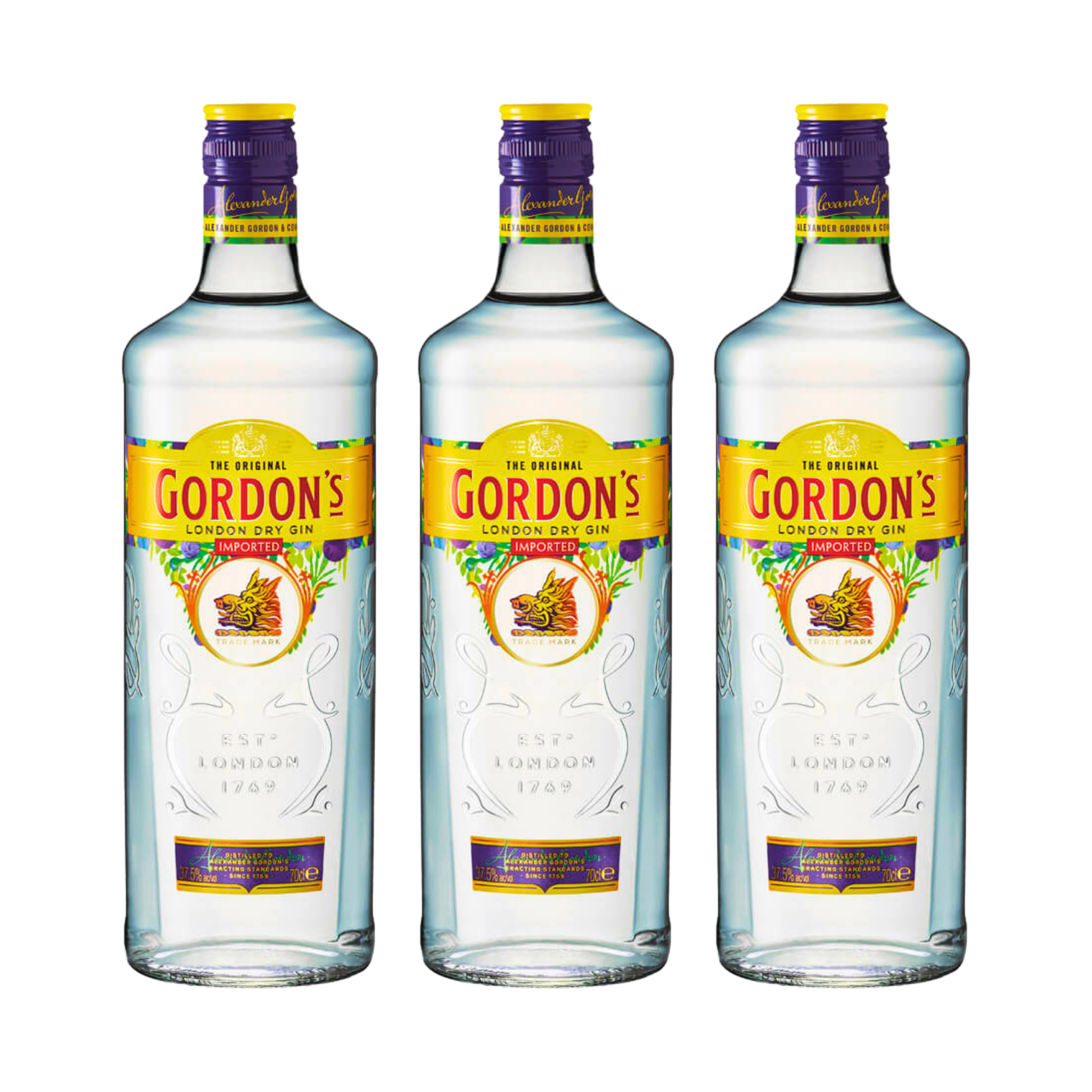 Gordon’s Dry Gin 0,7l 37,5% Vol. 3er Alkohol Set – Klassischer London Dry Gin – 3x 0,7 Liter Flaschen – Botanischer Wacholder Gin – Feinaromatischer Gin mit Koriander, Zimt & Zitrusnoten Alcohol