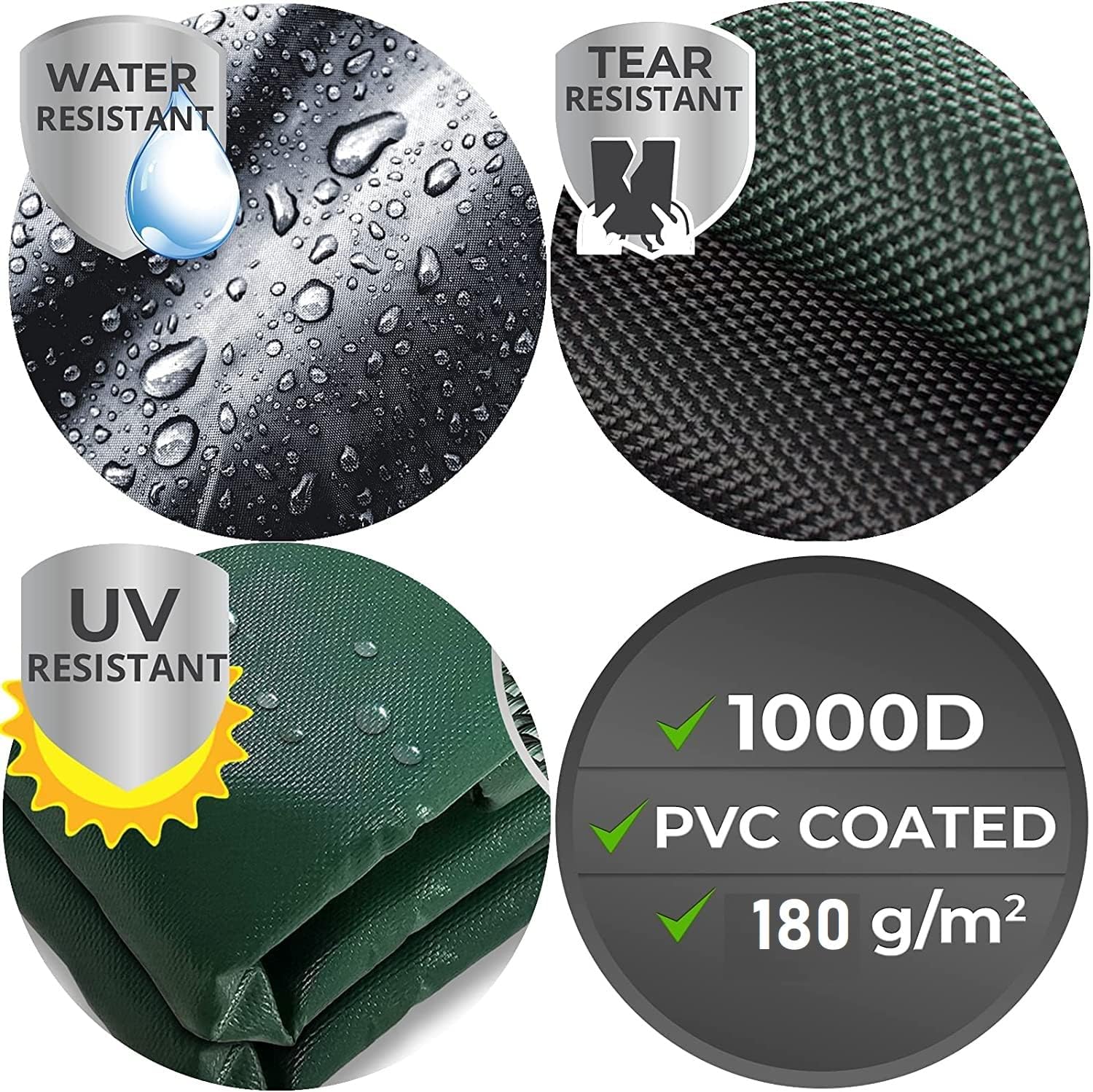 Exzellente Witterungsbeständigkeit: Durch das robuste Gewebe und die beidseitige Laminierung ist die Abdeckplane wasserdicht, winddicht und schneeabweisend. Sie bietet Schutz vor allen Wetterbedingungen.