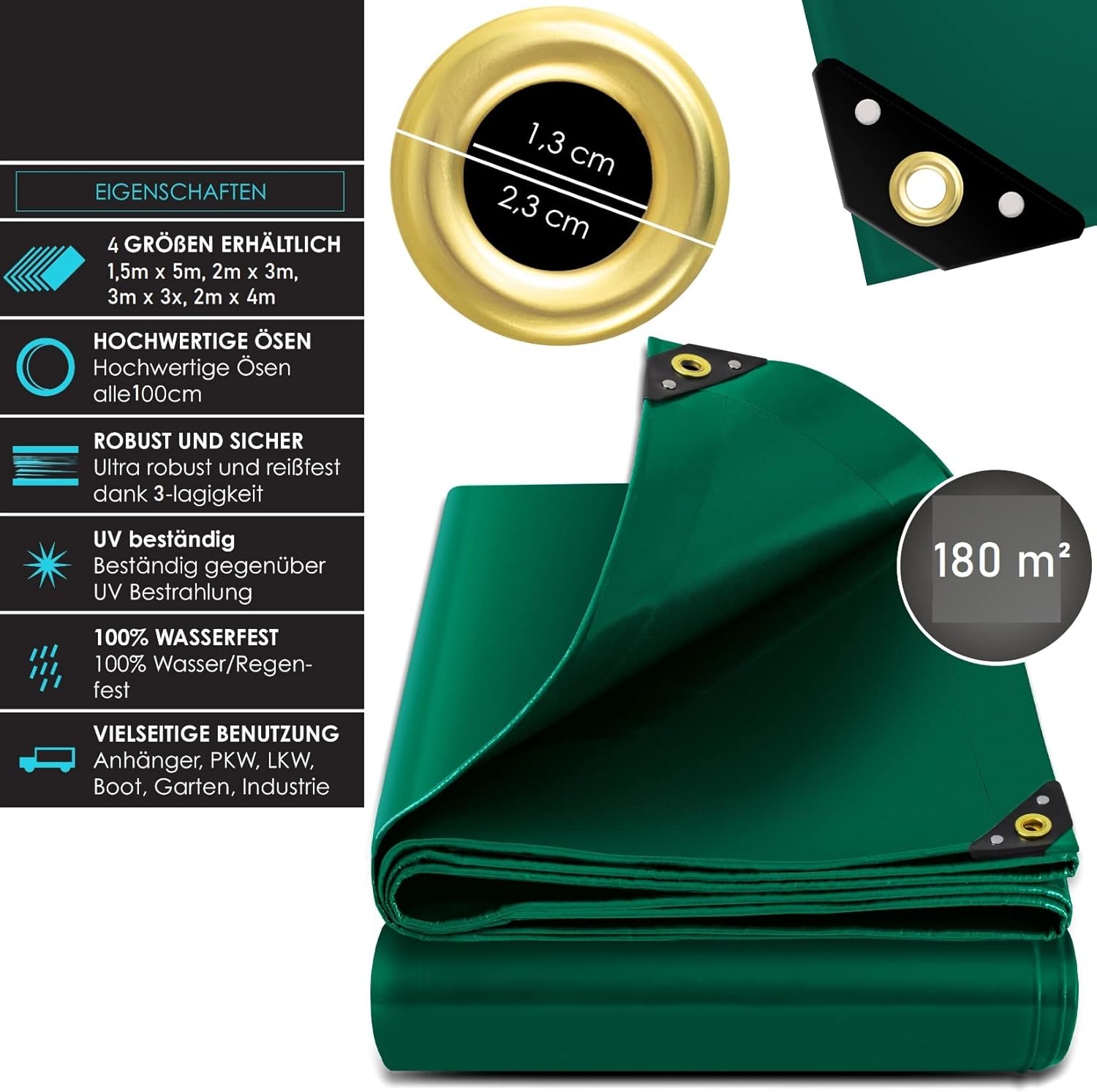 1 JUNG Abdeckplane Wasserdicht 180g/m² in Grün, Größe 3m x 3m