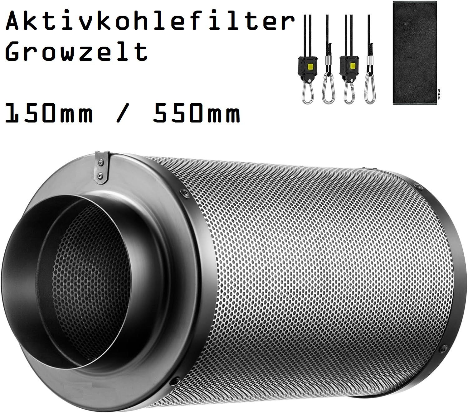 JUNG Aktivkohlefilter für Growbox 150mm bis 550mm – Effektive Geruchs- & Schadstoffentfernung, hochwertige australische Aktivkohle für Indoor-Pflanzenzelt, Gewächshaus & Pflanzenzucht, 99,7% Filtereffizienz