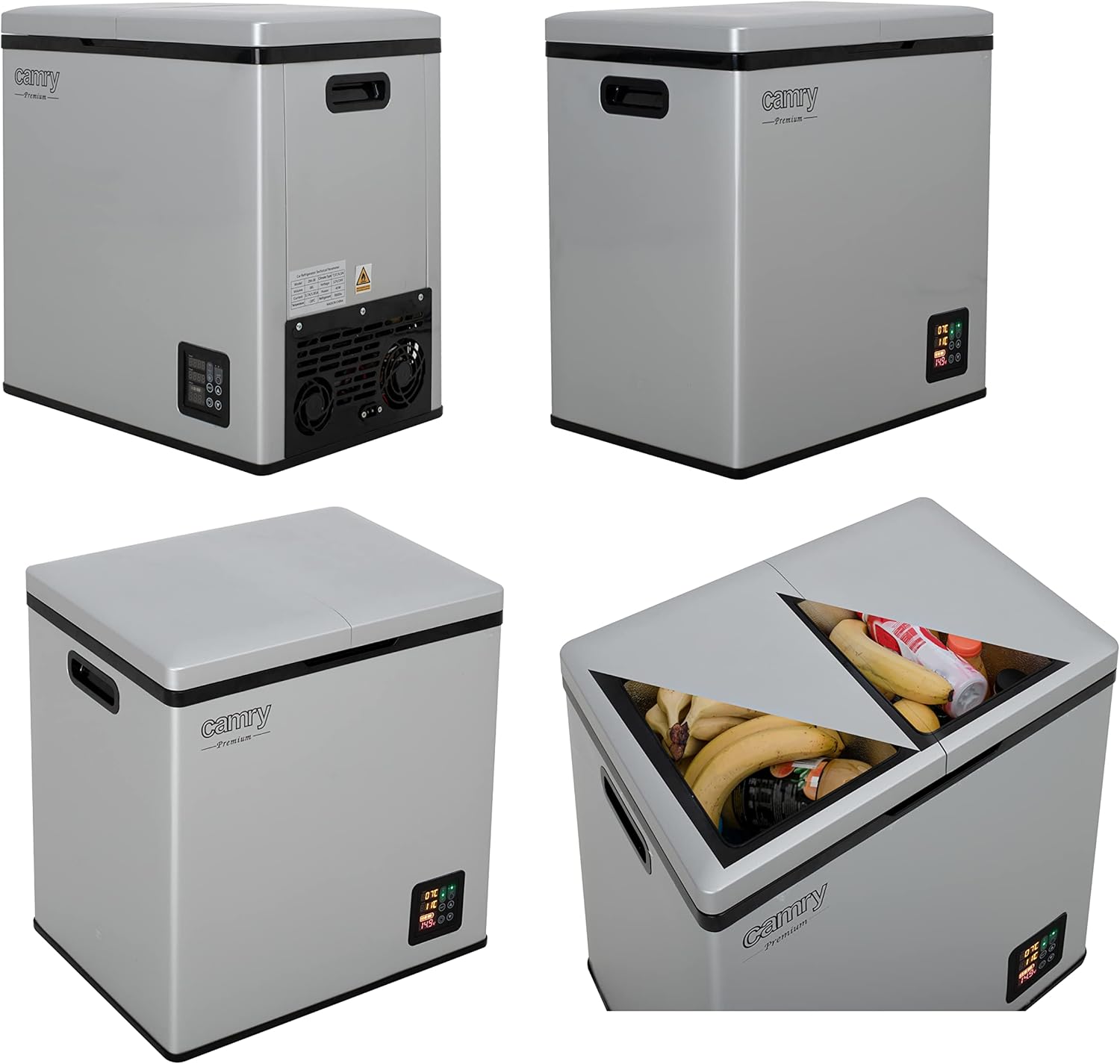 Der CAMRY CR8076 ist ein moderner Reise-Kompressorkühlschrank mit einem Fassungsvermögen von 38 Litern, aufgeteilt in zwei separate Kammern – 15 Liter für das Kühlfach und 23 Liter für das Gefrierfach. Jede Kammer verfügt über eine eigene Tür, was eine komfortable Nutzung ermöglicht. Dank des leistungsstarken Kompressors und der schnellen Abkühlung ist das Gerät ideal geeignet für Camping, Reisen oder sogar medizinische Transporte. Mit einem Temperaturbereich von -20°C bis +10°C für das Gefrierfach und +2°C bis +10°C für das Kühlfach sowie einem übersichtlichen LCD-Display lässt sich der Kühlprozess einfach überwachen und einstellen. Die dreifache Batterieschutzfunktion und die Memory-Funktion bei Stromausfällen bieten zusätzliche Sicherheit unterwegs.