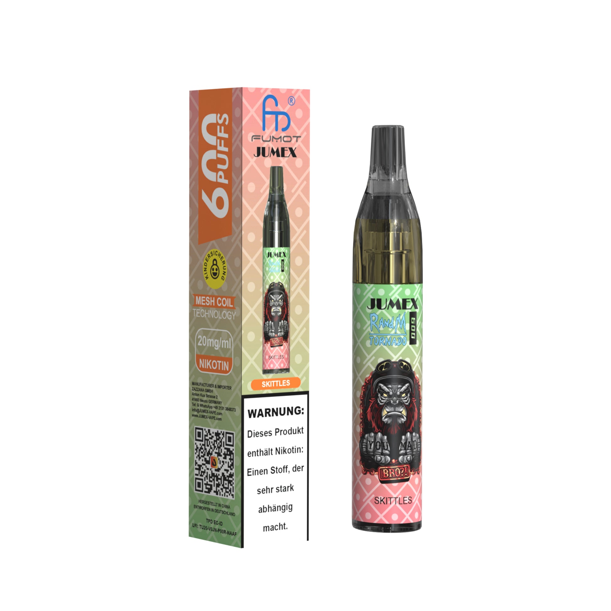 JUNG Jumex 600 Einweg E-Zigarette SKITTLES Geschmack mit Nikotin – Fruchtige Dampfer-Vape mit 600 Zügen, Nikotinsalz, Kompakt, Vape Pen Einweggerät, Verdampfer Liquid Einweg