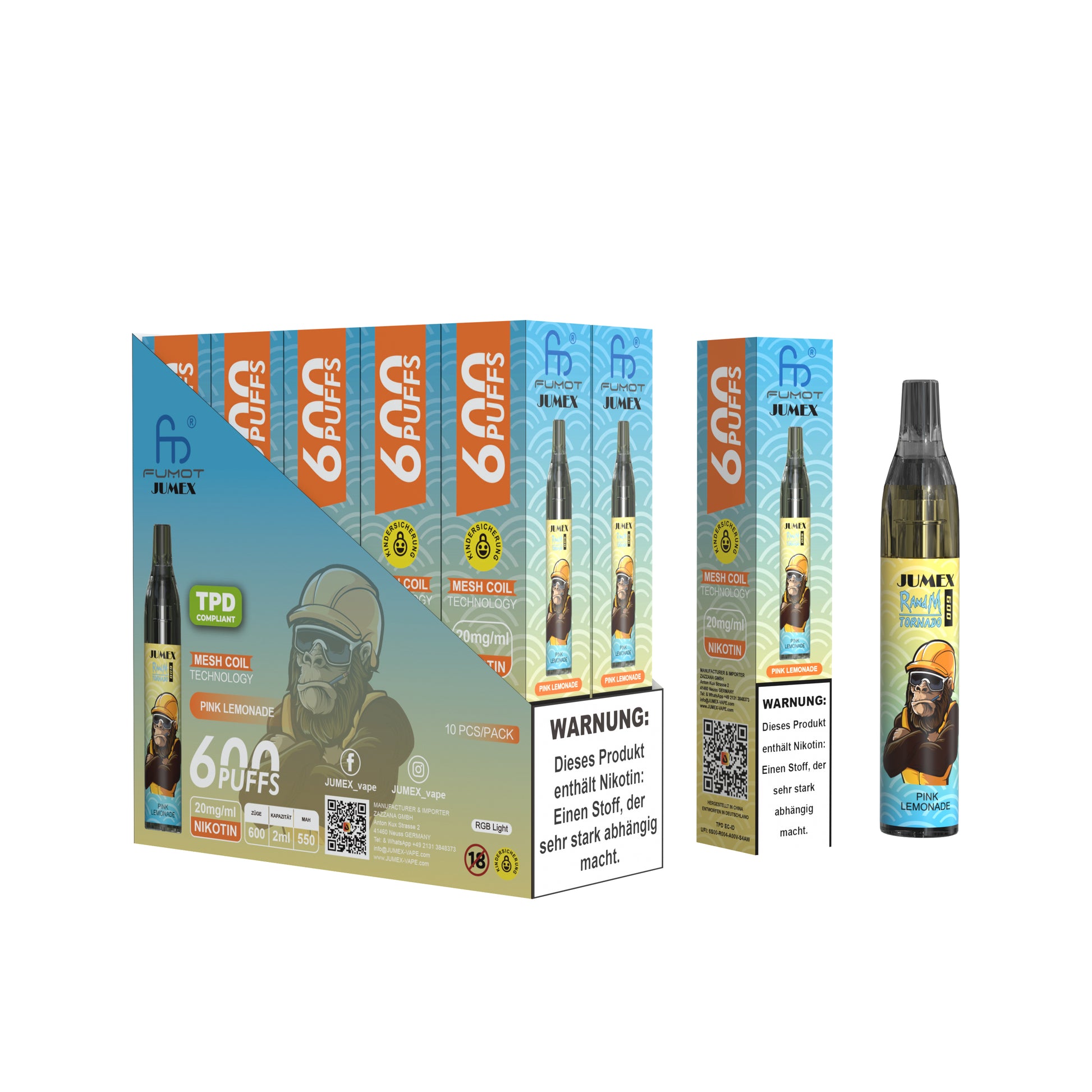 Nikotininhalt: Der JUNG Jumex 600 Pink Lemonade Vape enthält Nikotin und ist damit ideal für Dampfer, die den Kick von Nikotin genießen möchten.