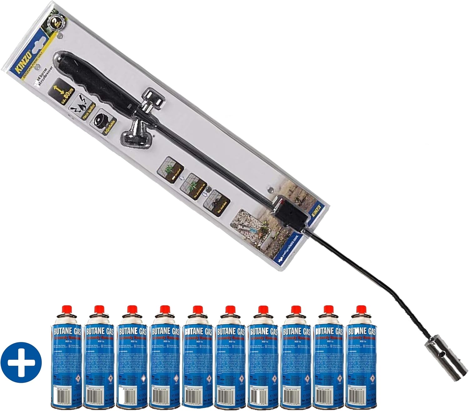 JUNG Kinzo Unkrautvernichter mit Piezozündung 80 cm, inkl. 10 Butangaskartuschen à 227 g, Gasbrenner mit regulierbarer Flamme, ideal für Grillanzünder, Shishakohleanzünder, max 1000°C