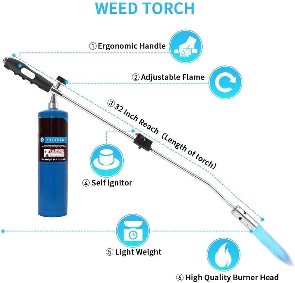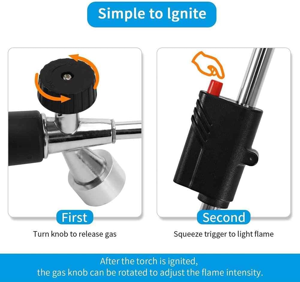 Einstellung der Flamme: Regulieren Sie die Flamme nach Bedarf, um die optimale Hitze für die Unkrautbeseitigung oder das Anzünden von Kohlen zu erreichen.