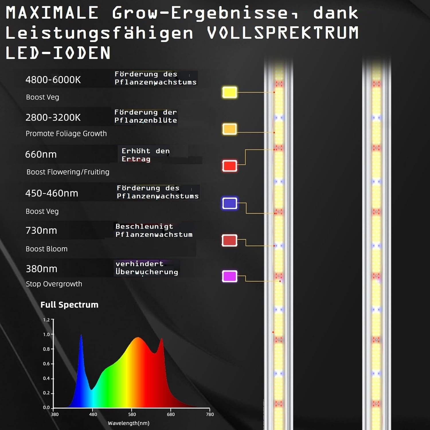 Lichtspektrum: 3000 K + 6000 K + 660nm + IR + UV