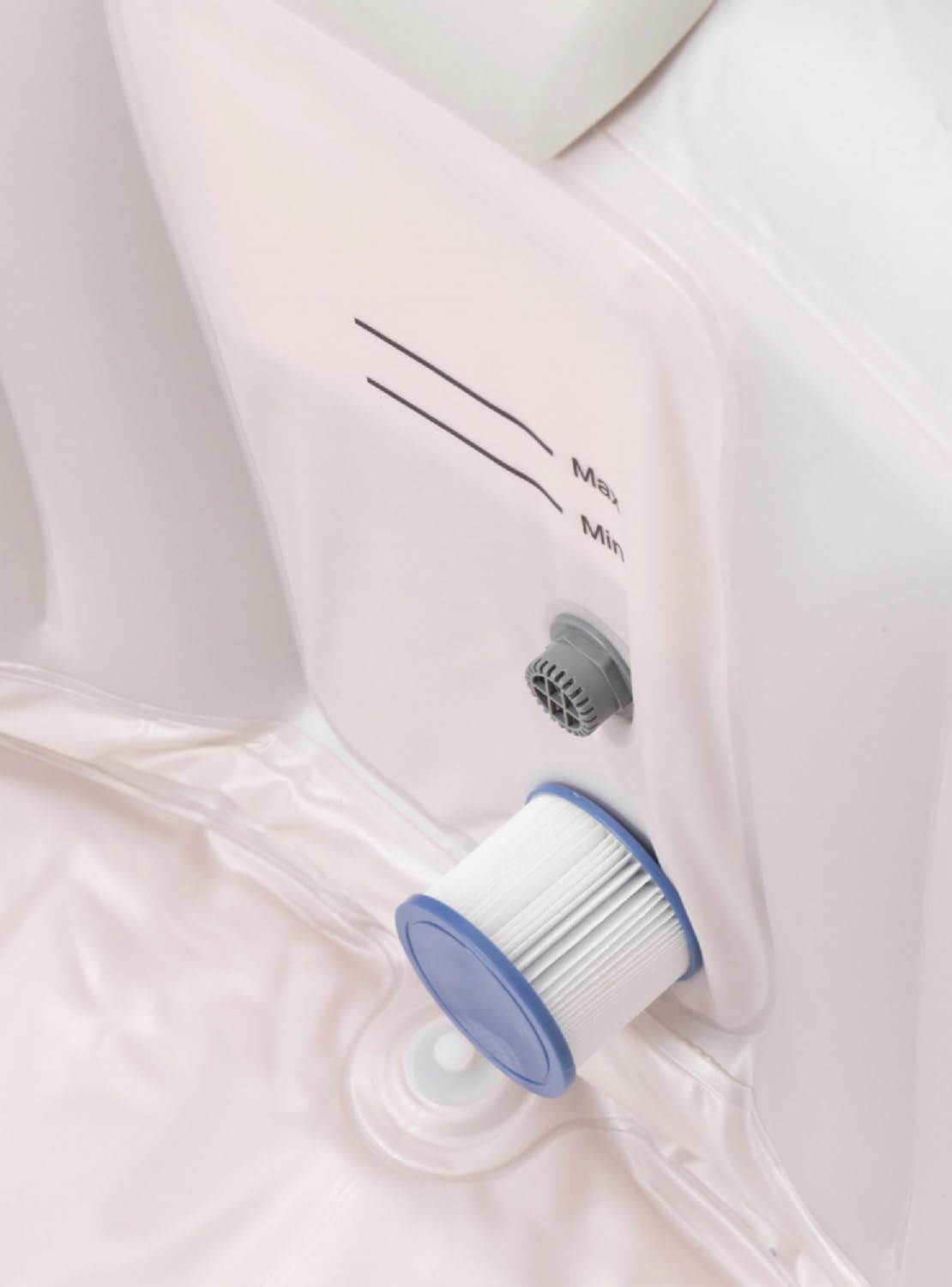Das umfangreiche Zubehörpaket enthält eine isolierende Abdeckung, Ersatz-Filterkartuschen, einen Reparaturflicken, einen Transportsack und viele weitere nützliche Zubehörteile, die die Handhabung und Wartung des Whirlpools erleichtern.