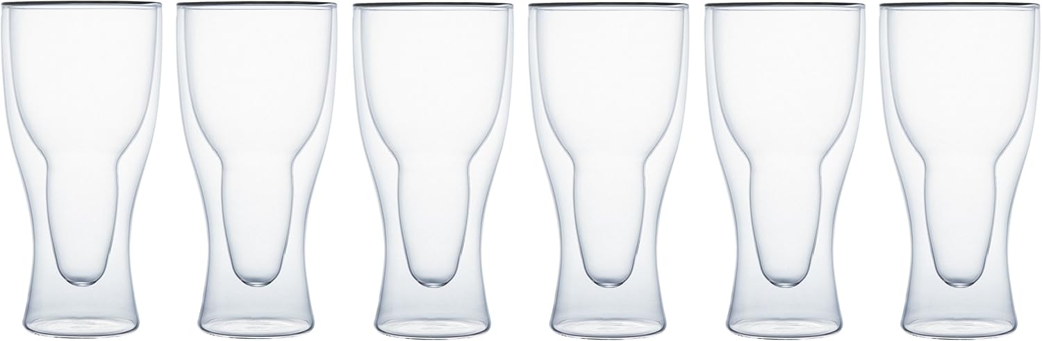 Klasique Doppelwandige Biergläser/Doppelwandglas 400 ml, Thermoglas mit Schwebeeffekt im 6er Set, für Bier, Tee, Eistee, Säfte, Wasser, Cola, Cocktails und Latte Machhiato geeignet