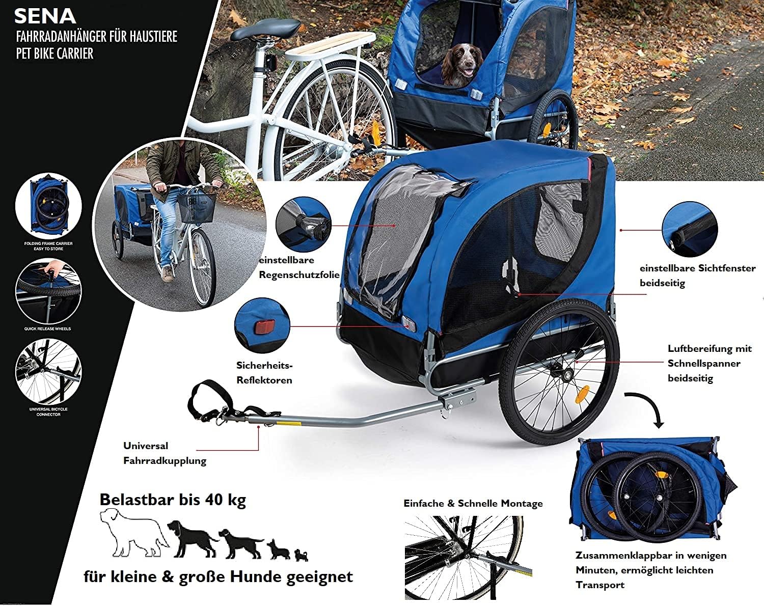 SENA Fahrradanhänger für Hunde bis 26 kg – Klappbarer Hundetransportanhänger mit TÜV, 16-Zoll Luftreifen, Reflektoren & Oxford-Gewebe – Haustier-Fahrradanhänger für große & kleine Hunde