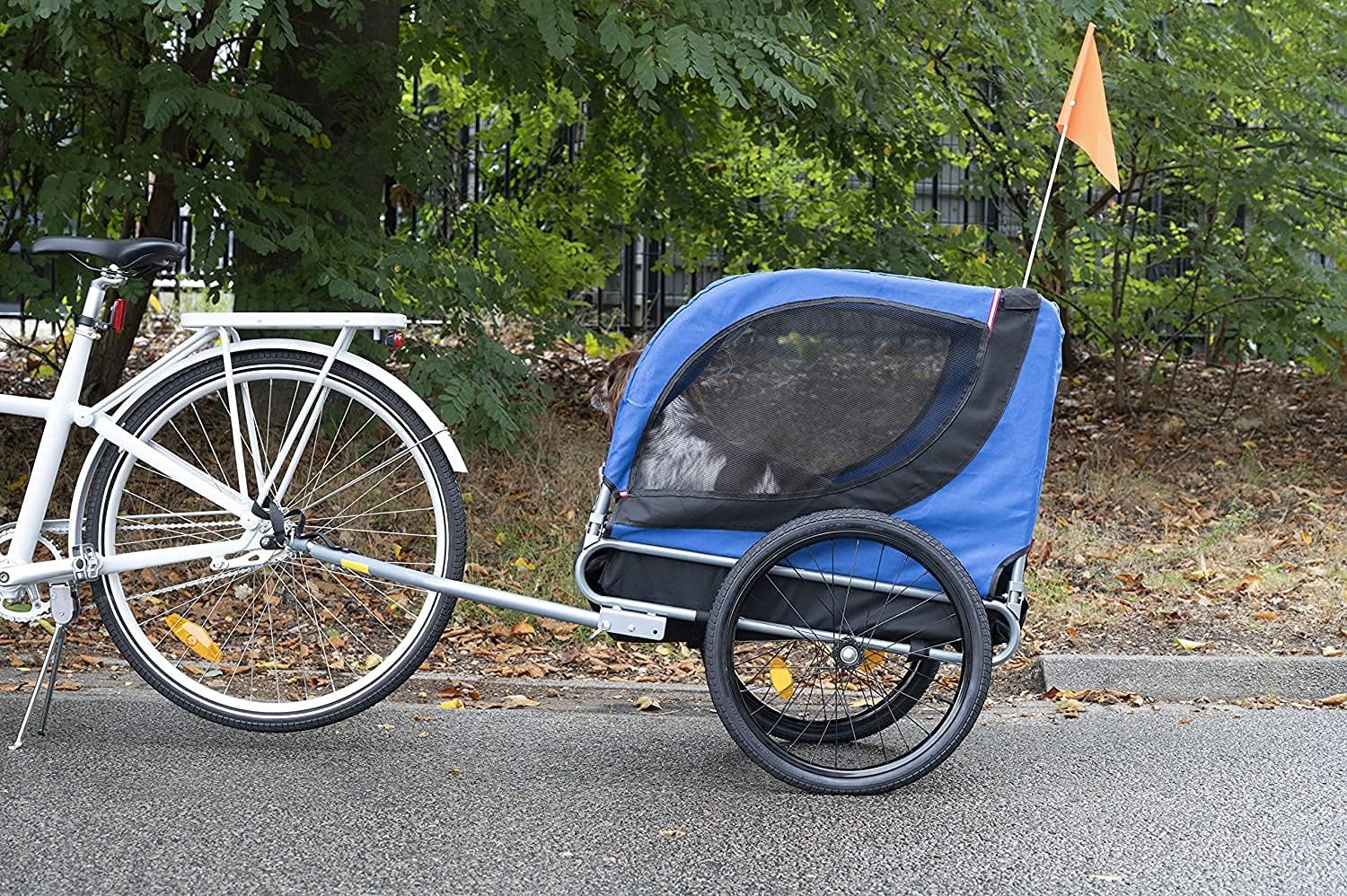 Der Fahrradanhänger verfügt über einen vorderen und hinteren Reißverschluss-Einstieg, wodurch sowohl kleine als auch große Hunde bequem einsteigen können. Gleichzeitig lässt er sich als Transportanhänger für Gepäck, Einkäufe oder Picknickausflüge nutzen.Hohe Stabilität und angenehmes Fahrverhalten: