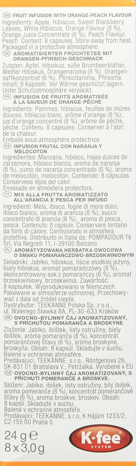 Fruchtige Erfrischung in jeder Kapsel: TEEKANNE TEALOUNGE System Orange Splash bietet ein intensives Geschmackserlebnis mit natürlichen Fruchtsäften wie Orangensaftkonzentrat und Pfirsicharoma. Die Kombination aus Apfel, Hibiskus, süßen Brombeerblättern und weißen Hibiskusblüten sorgt für eine fruchtige und farbenfrohe Tasse Tee.
