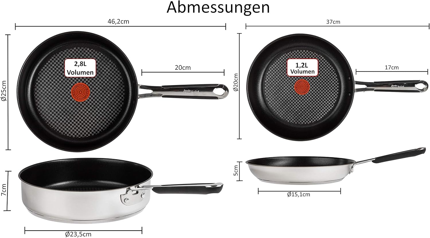 Tefal E30 Jamie Oliver 5-teiliges Set 11 Pfannenset Induktion 20 cm + Schmorpfanne 25 cm mit Deckel, Titanium Excellence Antihaftbeschichtung, ThermoSpot, rutschfeste Griffe, Spülmaschinenfest, für alle Herdarten geeignet