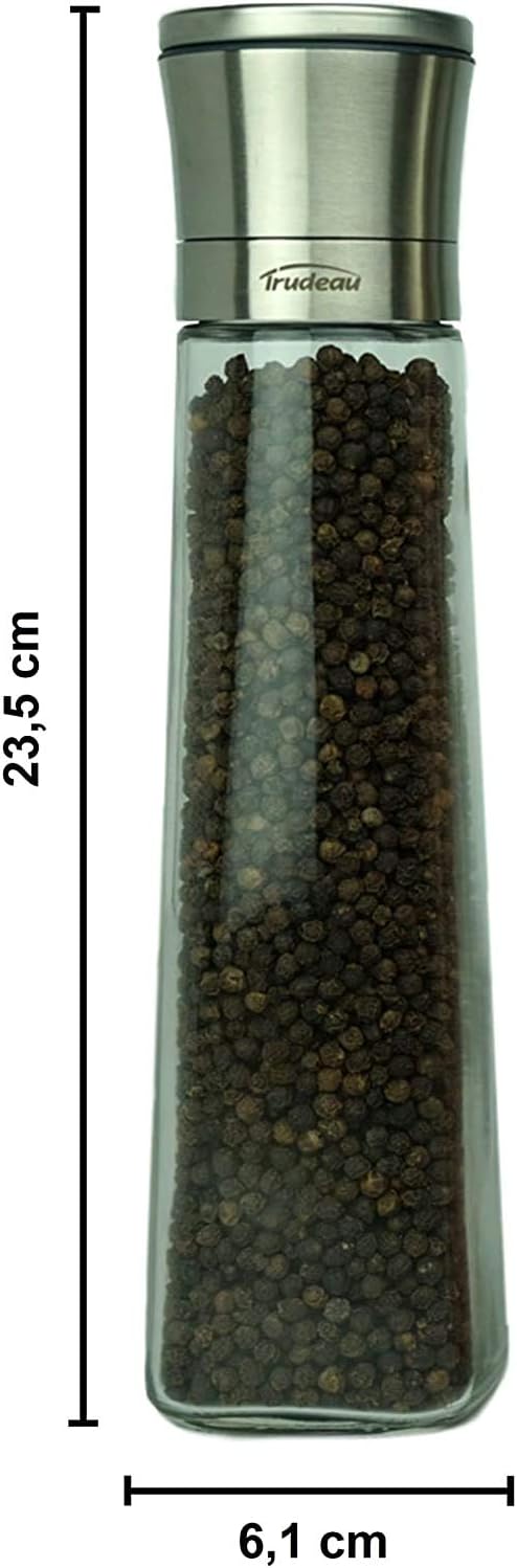 Trudeau Gewürzmühle Set 2er Salz- und Pfeffermühlen mit robustem Keramikmahlwerk, Edelstahlummantelung, Glasbehälter, stufenlos einstellbar, langlebige Gewürzmühlen für Salz, Pfeffer, Chili und diverse Gewürze