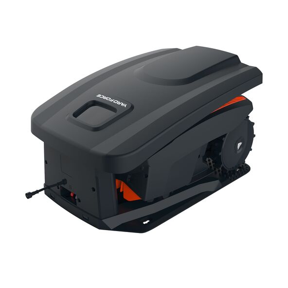 - Eine widerstandsfähige und wetterfeste Mähgarage, die den Roboter schützt, wenn er nicht im Einsatz ist